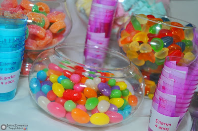 As guloseimas personalizadas (Bis, Tictac, Latinhas com Mini Confetes e Gelatinas) foram feitas pela Andreia da Fricotes (https://www.fricotes_cia.eev.com.br/), e eu amei!