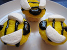 Cupcake de abelha e de cenouras, para festinhas do Pooh e amigos: