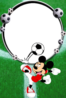 Imagens e molduras para convites, bis, pirulito, latinha, cone e canudinho de futebol e Mickey futebol.
