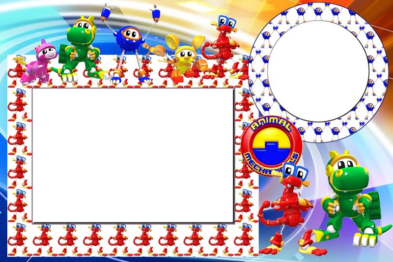 Mecanimais – Kit Completo com Molduras para Convites e Rótulos para Guloseimas e Lembrancinhas