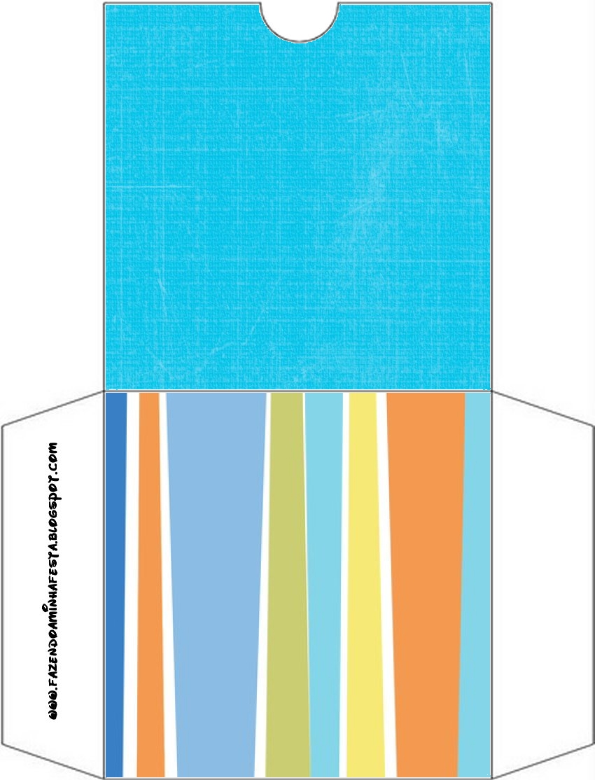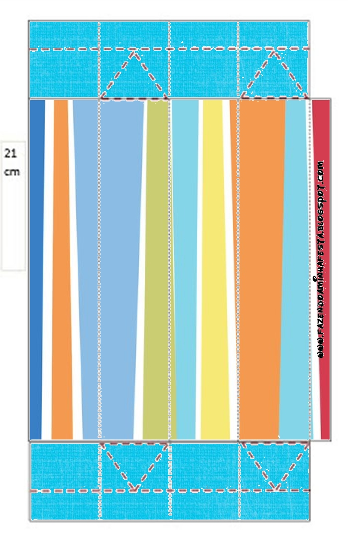 Tampa Caixinha Convite Azul com Listras Coloridas: