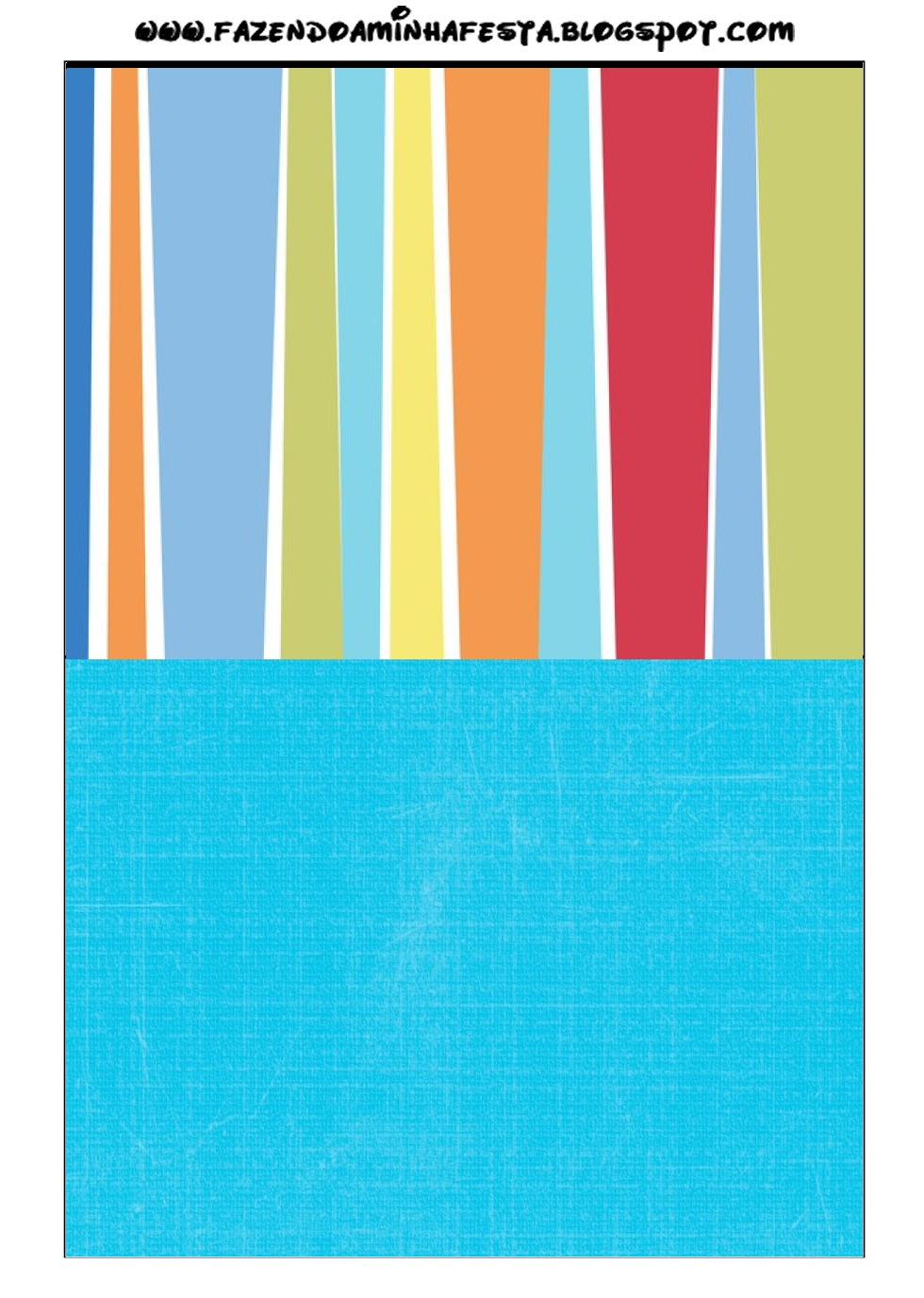 Azul e Listras Coloridas – Kit Completo com molduras para convites, rótulos para guloseimas, lembrancinhas e imagens!