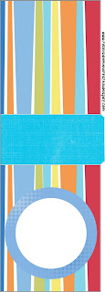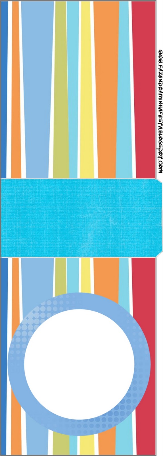 Rótulo Latinha, Gelatina ou Topper Cupcakes Azul com Listras Coloridas: