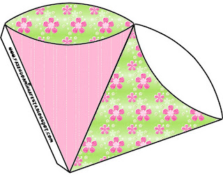 Convite Triangular Transpassado Flores Rosa e Verde: