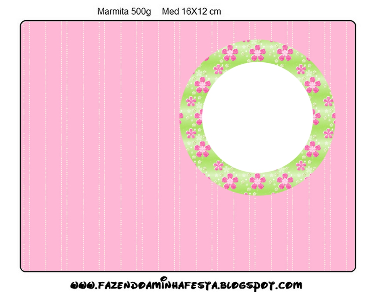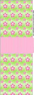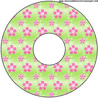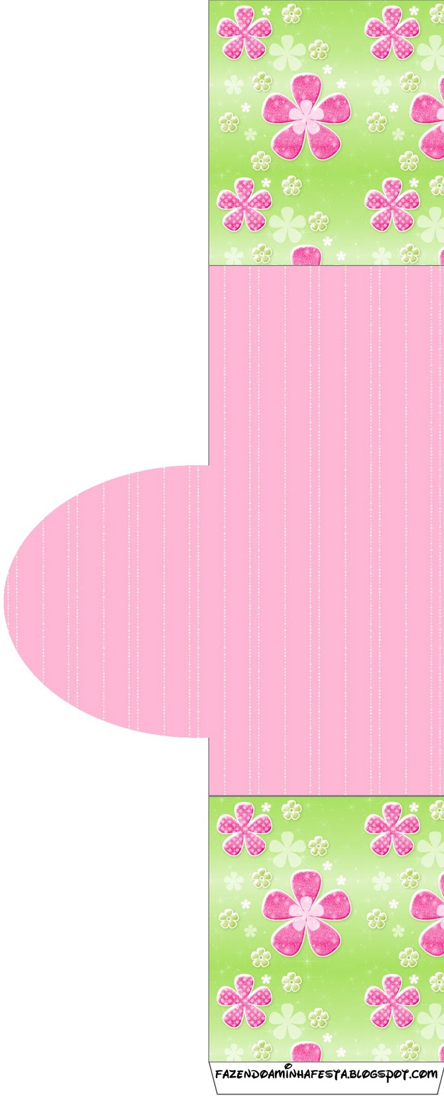Rótulo Gelatina, Latinha ou Topper Cupcake Flores Rosa e Verde: