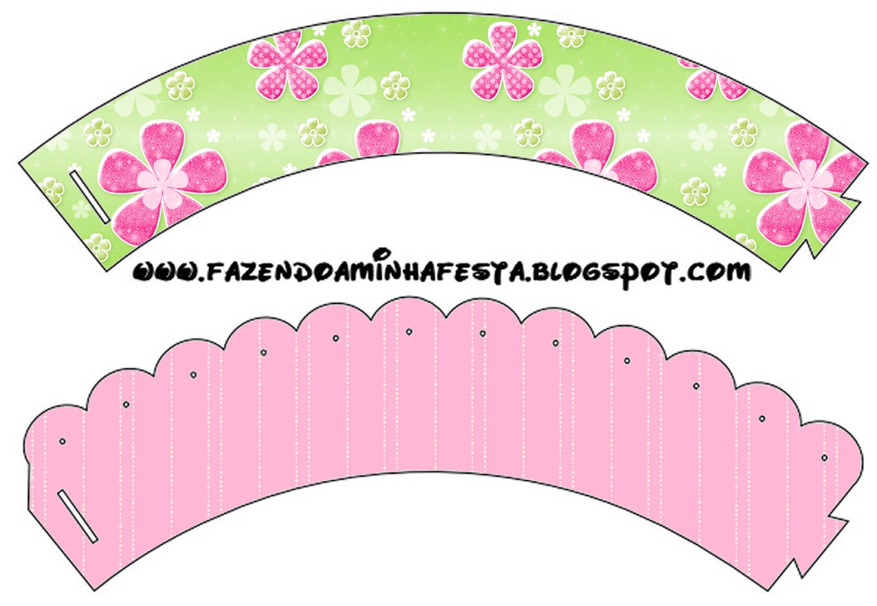 Saias Wrappers Cupcakes Flores Rosa e Verde: