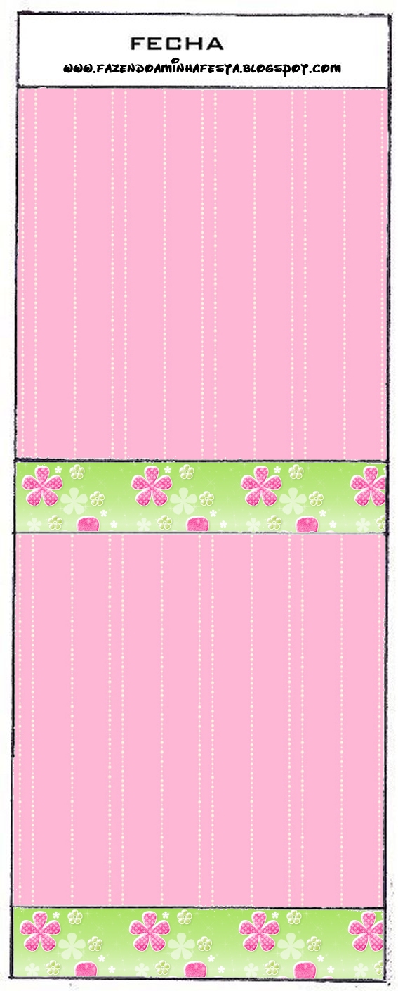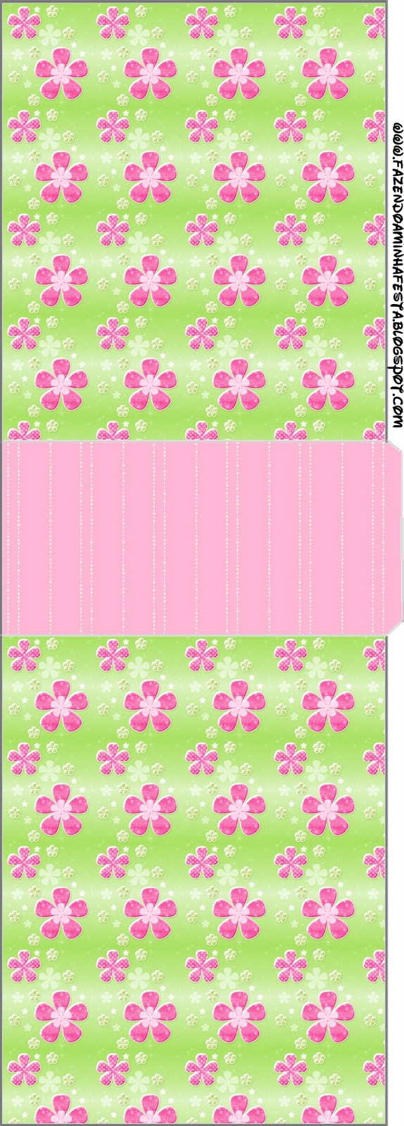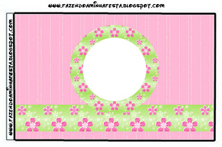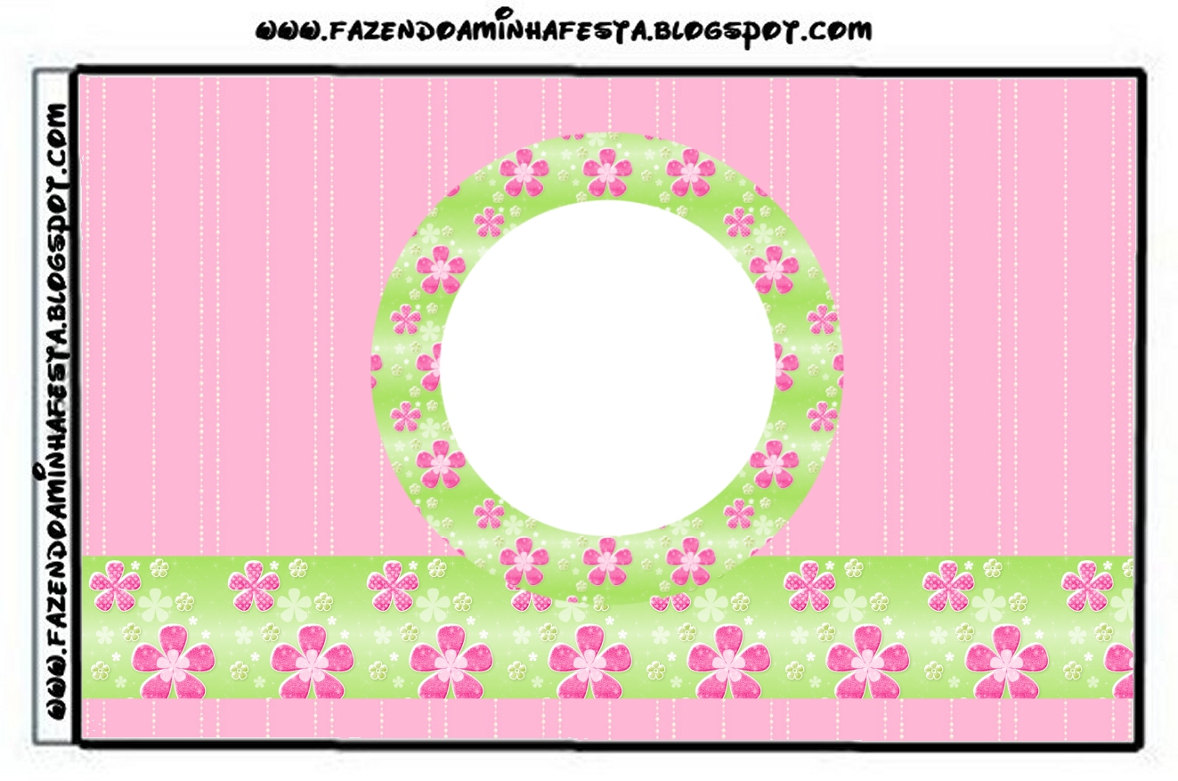 Flores com Fundo Rosa e Verde – Kit Completo com molduras para convites, rótulos para guloseimas, lembrancinhas e imagens!