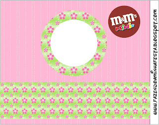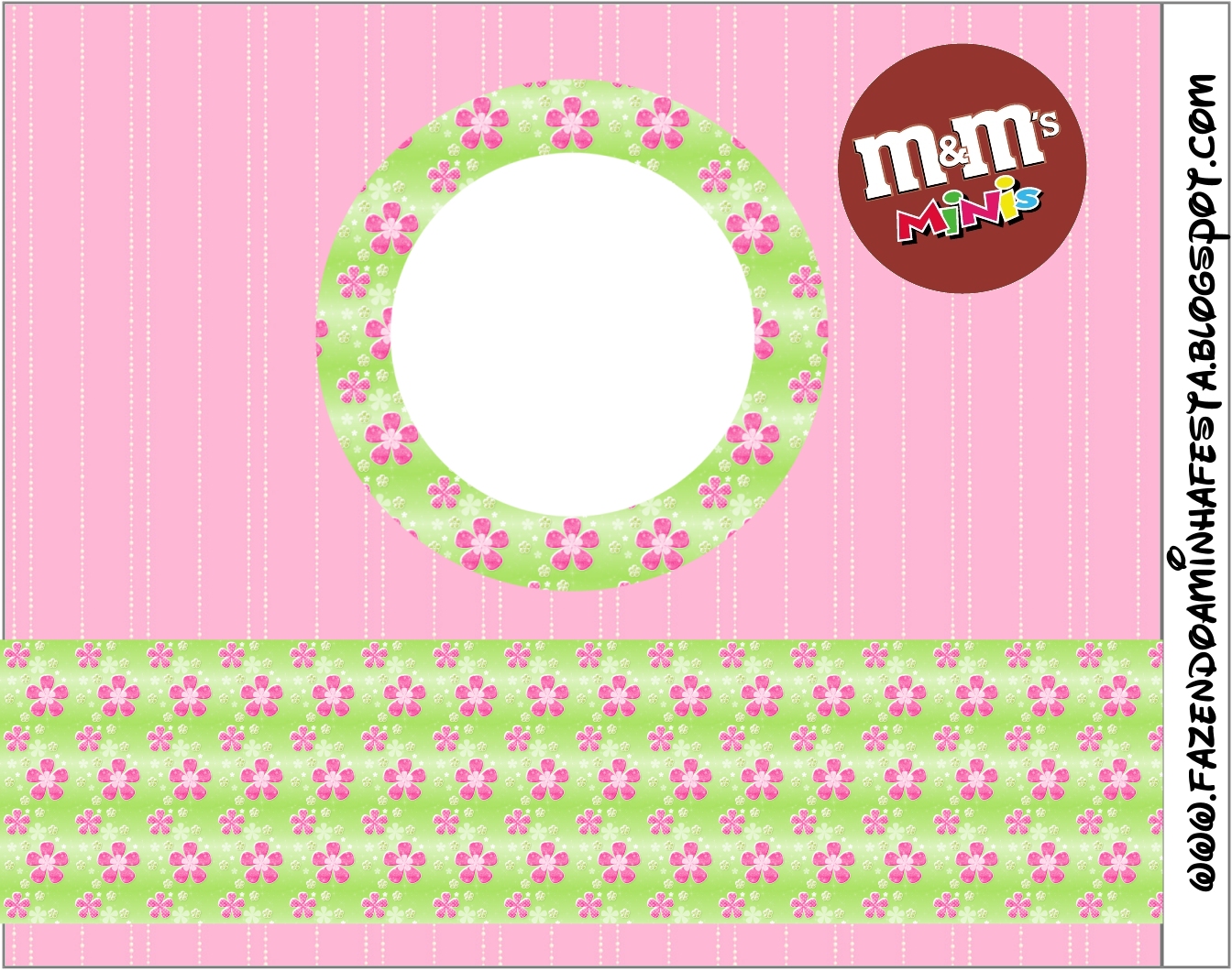 Rótulo Mini M&M Confeti Flores Rosa e Verde: