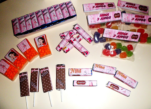 Uaaaauuu, venham quanta coisa linda fez a nossa leitora para o aniversário de 3 anos de sua princesa Nina!!! Fiquei apaixonada ao ver o kit da Angelina Ballerina pronto! Adorei!!!