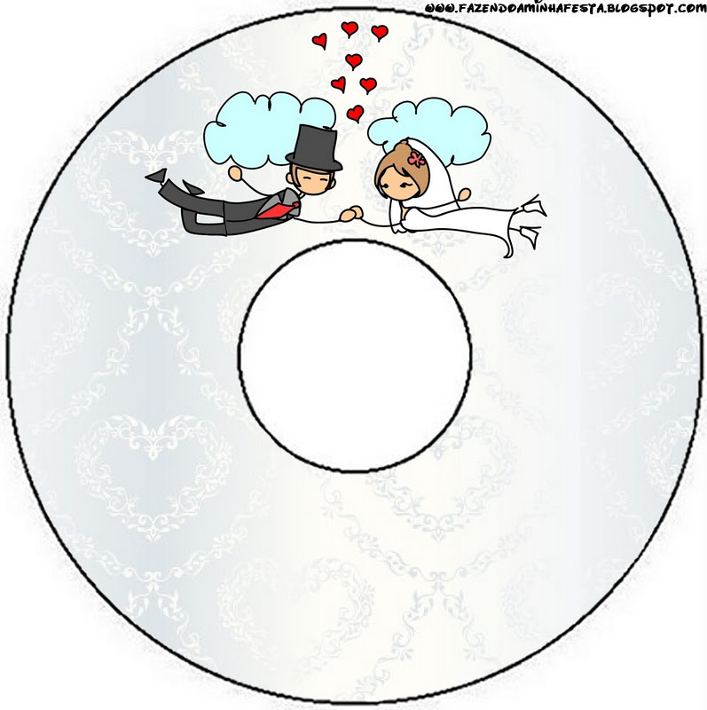 Rótulo CD DVD Casamento Noivinhos Palito: