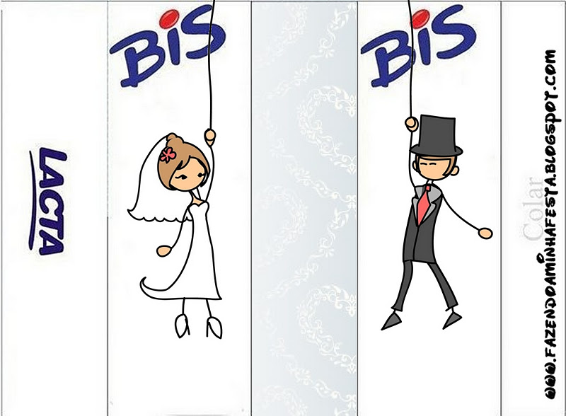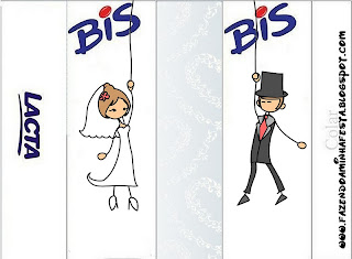 Rótulo Bis com e sem Logo Lacta Casamento Noivinhos Palito: