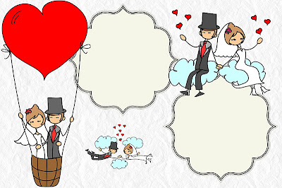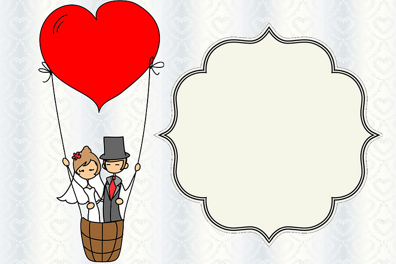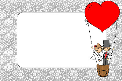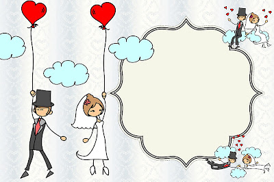 Moldura Convite e Catão Casamento Noivinhos Palito: