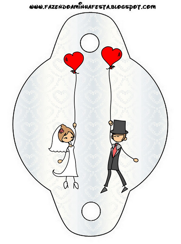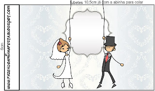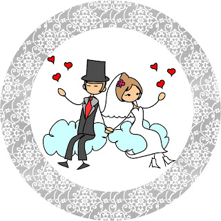 Rótulos para: Latinha. Gelatina, Tampinhas e Topper Cupcakes Casamento Noivinhos Palito: