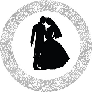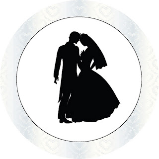 Rótulos para: Latinha, Gelatina, Tampinhas e Topper Cupcakes Casamento Noivos Silhueta: