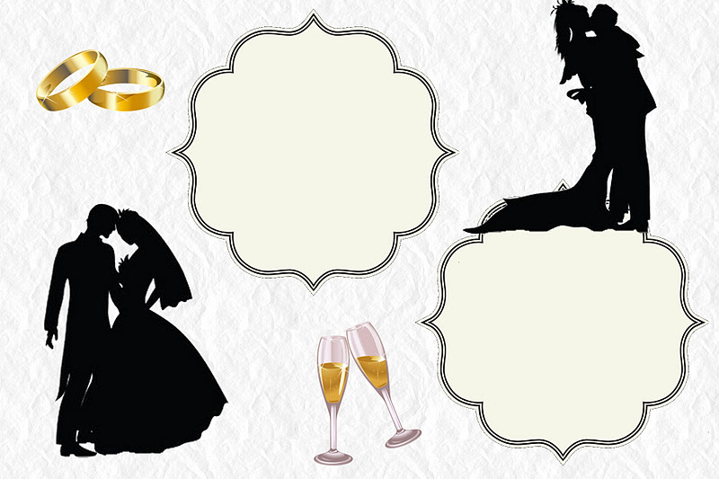 Casamento Noivos Silhueta – Kit Completo com molduras para convites, rótulos para guloseimas, lembrancinhas e imagens!