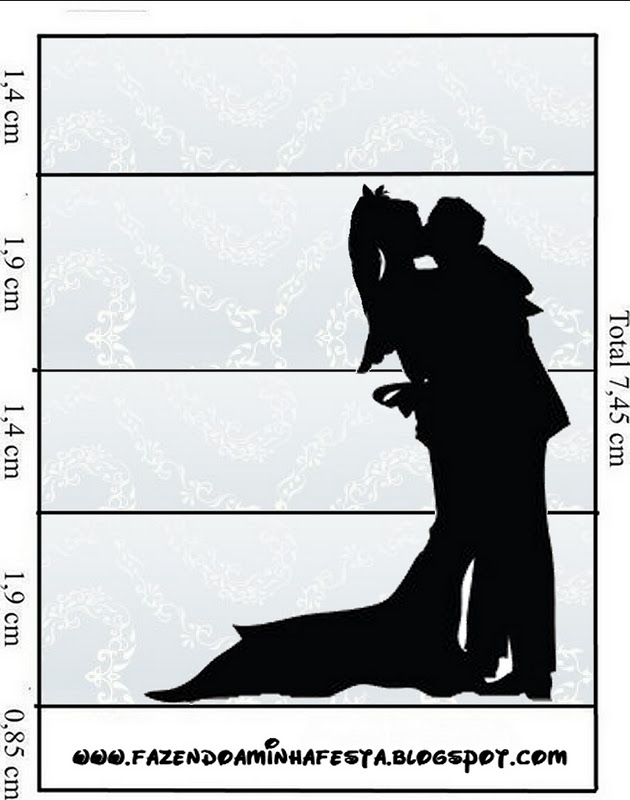 Rótulos para: Latinha, Gelatina, Tampinhas e Topper Cupcakes Casamento Noivos Silhueta:
