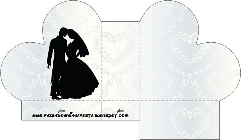 Convite Caixa Fundo Casamento Noivos Silhueta: