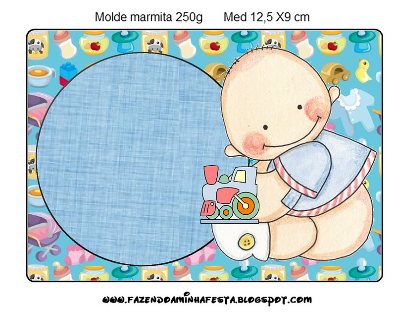 Tampa Marmita Grande Chá de Bebê e Nascimento Menino e Trenzinho: