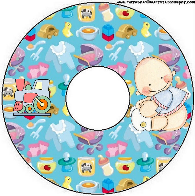 Rótulo CD DVD Chá de Bebê e Nascimento Menino e Trenzinho: