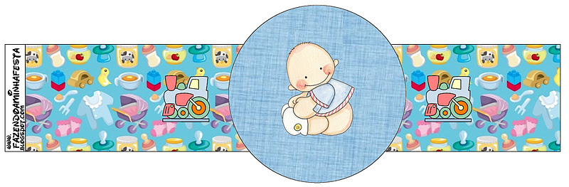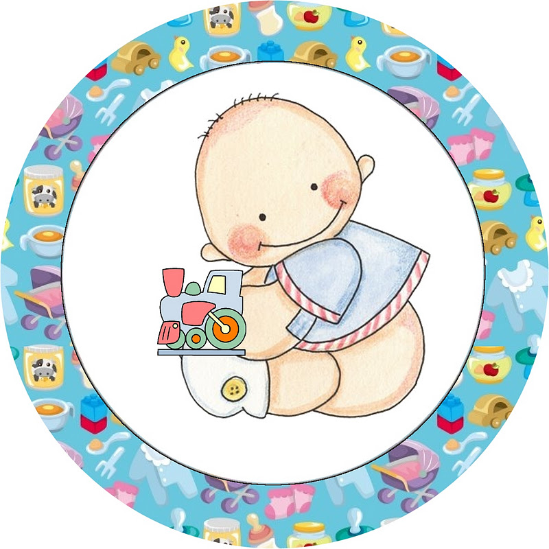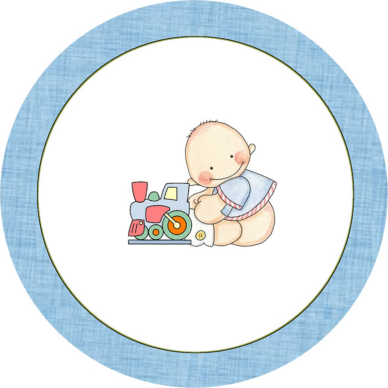 Rótulos para: Latinha, Gelatina, Tampas e Toppers Cupcakes Chá de Bebê e Nascimento Menino e Trenzinho: