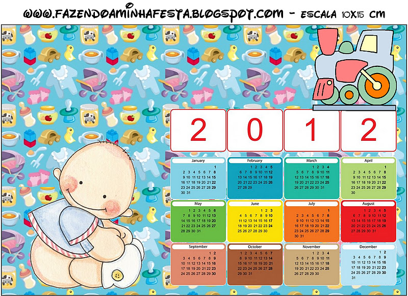 Calendário 2012 Chá de Bebê e Nascimento Menino e Trenzinho: