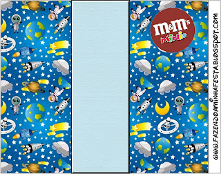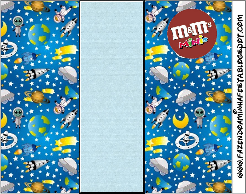 Rótulo Mini M&M Mini Confeti Fundo Alien e Astronauta: