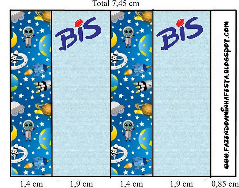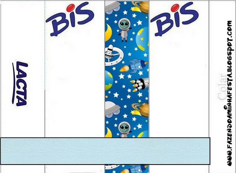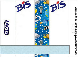 Rótulo Bis come sem logo Lacta Fundo Alien e Astronauta: