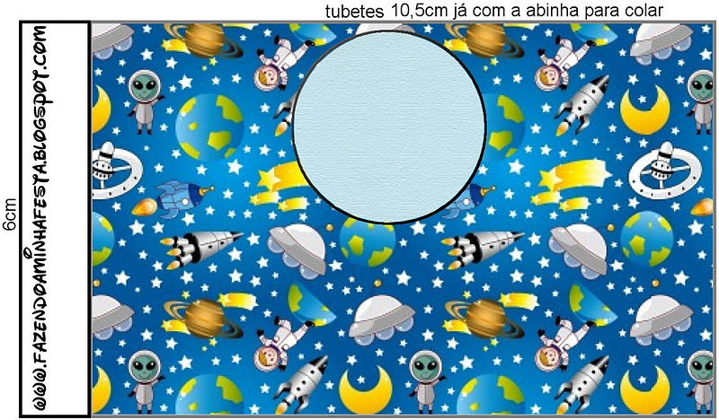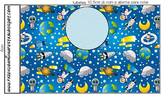 Rótulo Tubetes Fundo Alien e Astronauta: