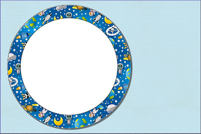 Moldura Convite e Cartão Fundo Alien e Astronauta: