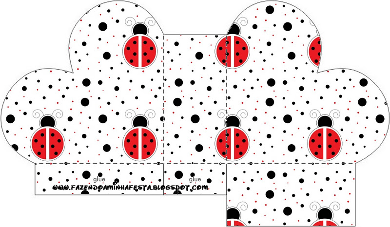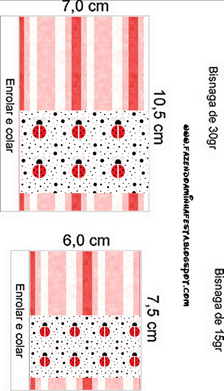 Rótulos para: Latinha. Gelatina, Tampinhas e Toppers Cupcakes Fundo de Joaninha: