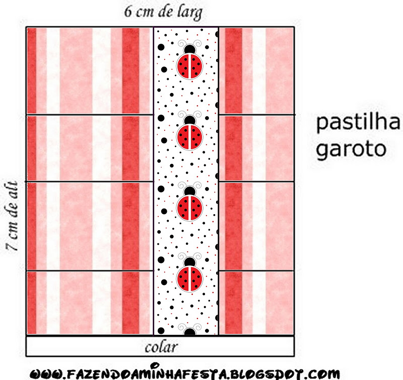 Convite Pirulito qualquer tamanho Fundo de Joaninha: