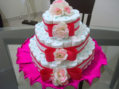 Para inspiração, imagens de Bolos de Fraldas para Chá de Bebê de Menina, retiradas da Net*