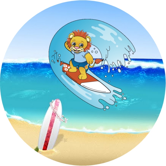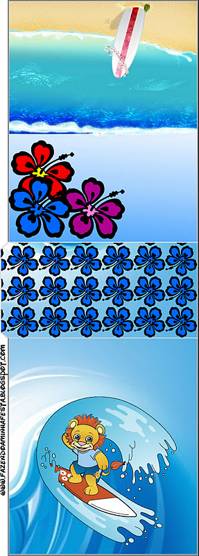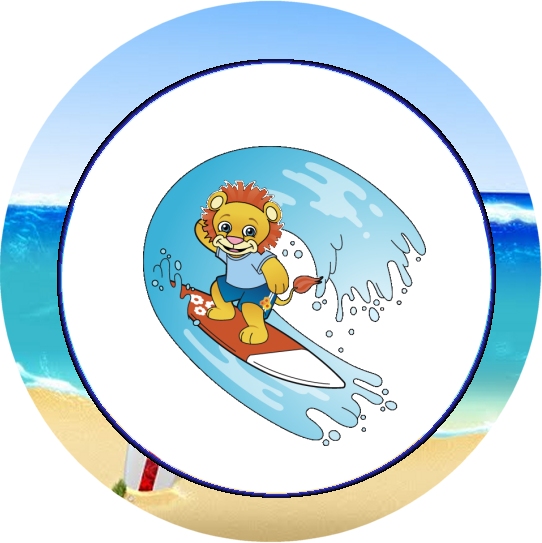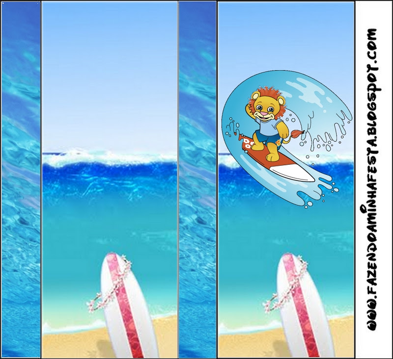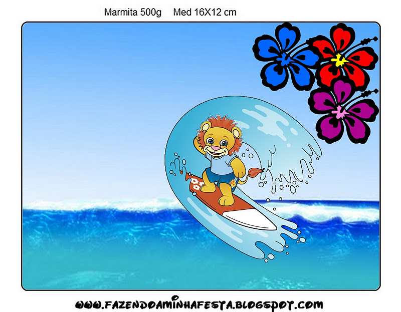Rótulos para: Latinhas, Gelatina, Tampinhas e Topper Cupcakes Surf Leãozinho: