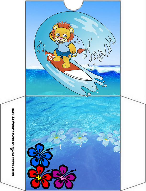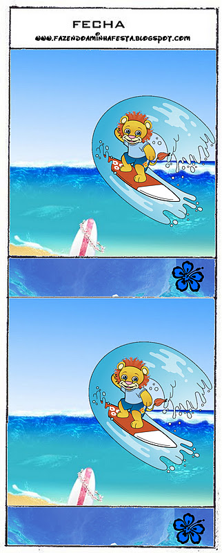 Surf Leãozinho – Kit Completo com molduras para convites, rótulos para guloseimas, lembrancinhas e imagens!
