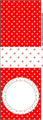 Rótulos para: Latinha, Gelatina, Tampas e Topper Cupcakes Vermelho e Branco com Bolinhas:
