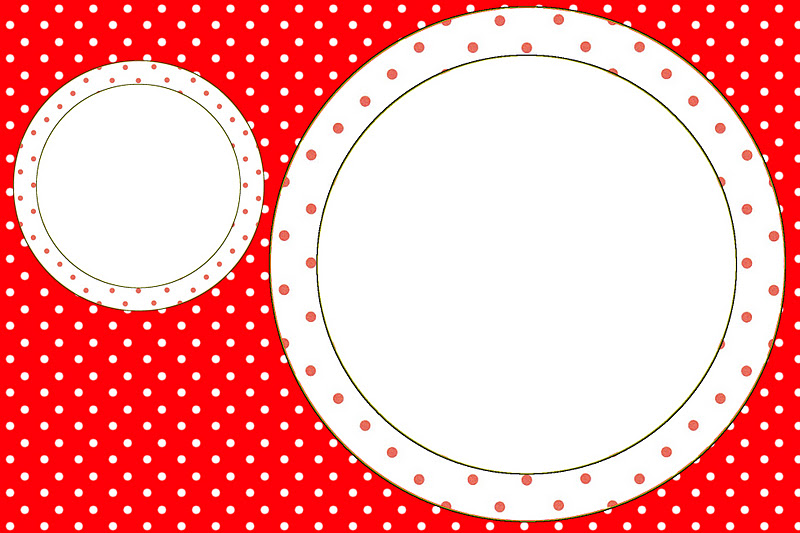 Moldura Convite e Cartão Vermelho e Branco com Bolinhas: