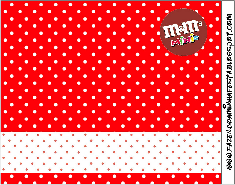 Rótulo Mini M&M Mini Confeti Vermelho e Branco com Bolinhas: