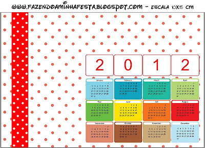 Calendário 2012 Vermelho e Branco com Bolinhas: