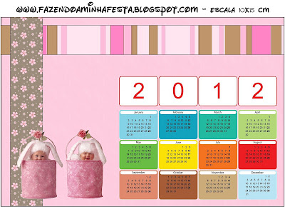 Convite Calendário 2012 Páscoa Anne Geddes Marrom e Rosa: