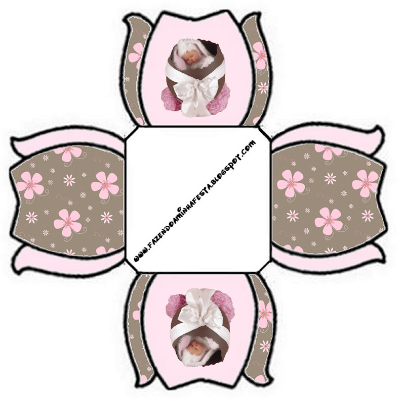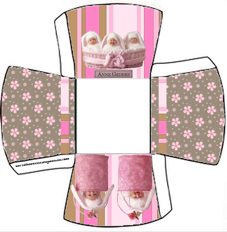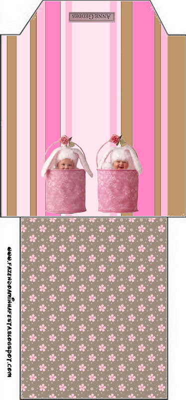 Fundo Convite Caixa Páscoa Anne Geddes Marrom e Rosa: