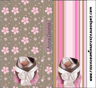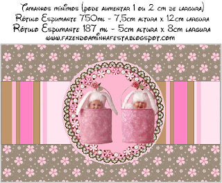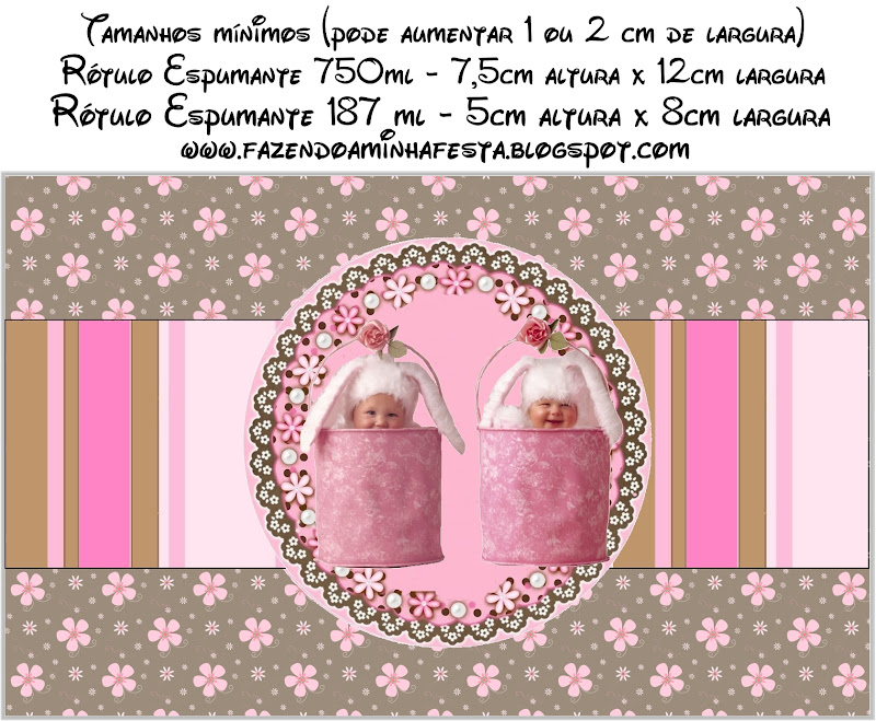 Rótulos Espumante/Champagne e Vinho Páscoa Anne Geddes Marrom e Rosa: