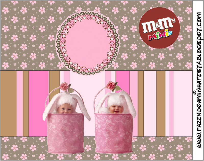 Rótulo Mini M&M Mini Confeti Páscoa Anne Geddes Marrom e Rosa:
