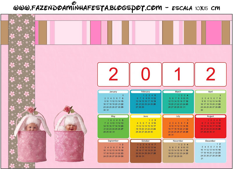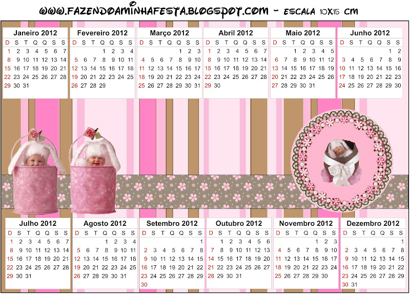 Convite Calendário 2012 Páscoa Anne Geddes Marrom e Rosa: