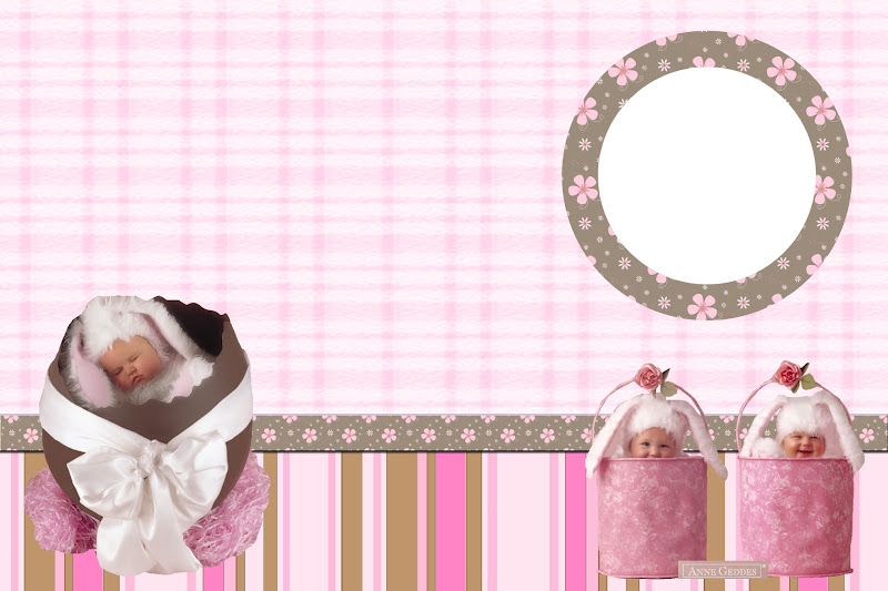 Moldura Convite e Cartão Páscoa Anne Geddes Marrom e Rosa: