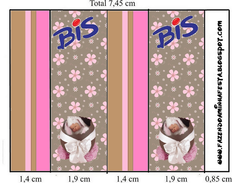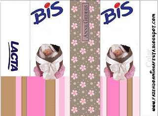 Rótulo Bis com Logo Lacta Páscoa Anne Geddes Marrom e Rosa: