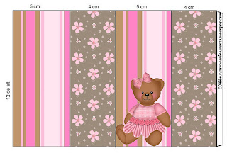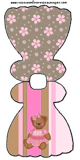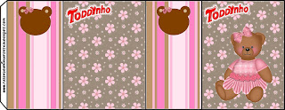 Rótulo Tubetes Ursinha de Vestido Marrom e Rosa:
