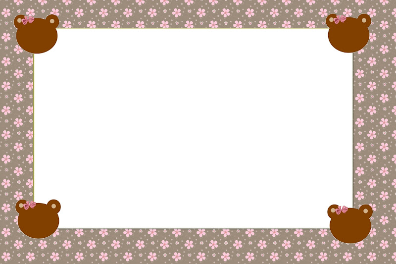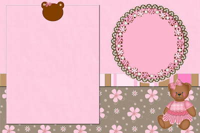 Moldura Convite e Cartão Ursinha de Vestido Marrom e Rosa: