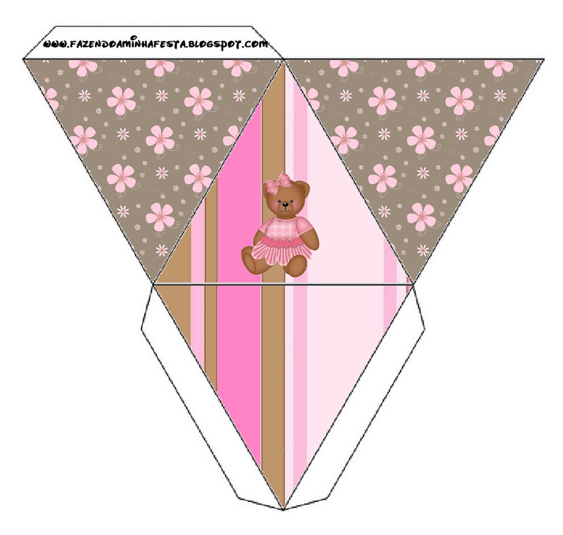 Caixa Pirâmide Ursinha de Vestido Marrom e Rosa:
