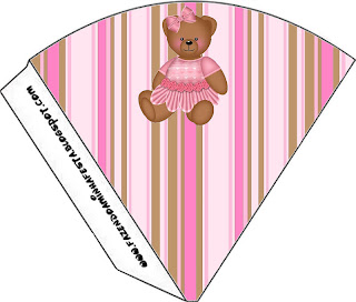 Cone Guloseimas Ursinha de Vestido Marrom e Rosa: