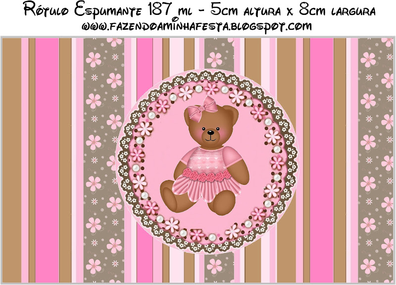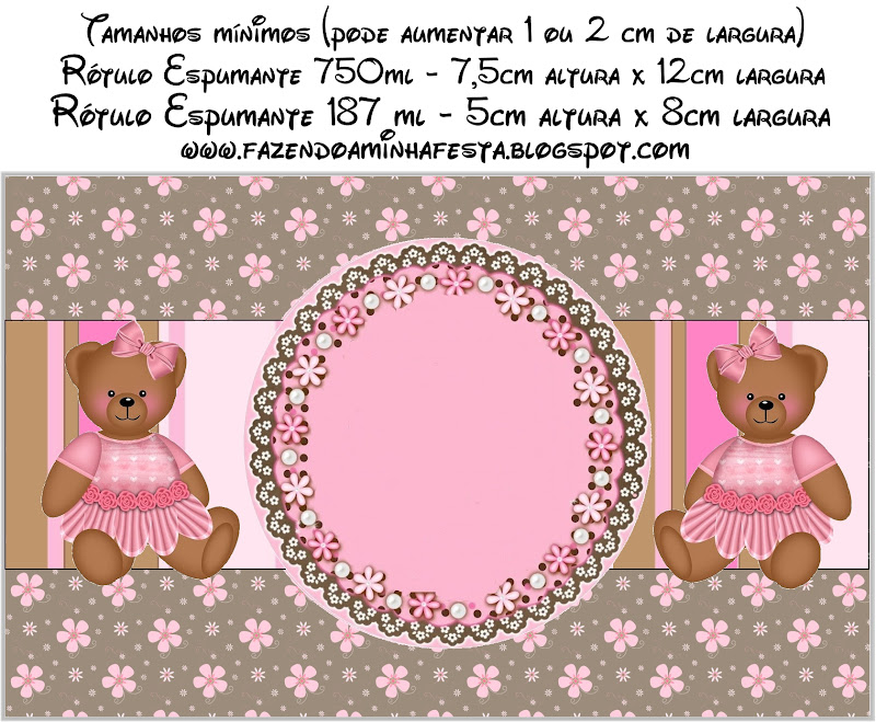 Rótulos Espumante/Champagne e Vinho Ursinha de Vestido Marrom e Rosa: